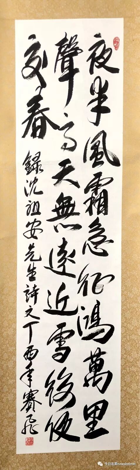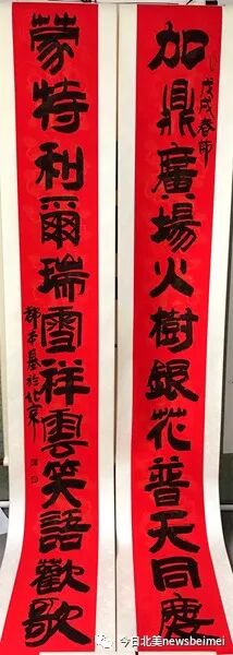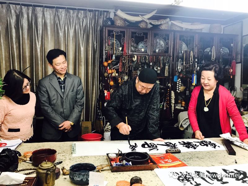 “第二届蒙特利尔欢乐春节庙会”组委会主席张仕根先生介绍,之前他曾赴北京拜访著名书画艺术家都本基,在见面交流的过程中,都本基对在加拿大弘扬中华文化非常赞赏,欣然提笔挥毫写就题字。